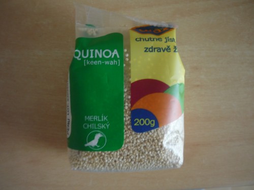 Pseudoobilovina pocházející z And už přišla i k nám. Toto „zázračné obilí inků“ je vlastně jednoletá bylina, z které se využívají semena. Ta se zpracovávají jako obilovina (stejně jako třeba naše známá pohanka), tedy se vaří jako rýže, nebo se z její mouky peče chléb. Je skvělou potravinou pro lidi nesnášející lepek, protože ho neobsahuje. Má přitom vysoký nutriční význam, neboť je plná vitamínů, minerálů a esenciálních aminokyselin. Je také hodně propagovaná jako potravina pro vegetariány, kteří mají celkově nízký příjem bílkovin. Mě to ale přijde nadnesené, neboť výrobci uvádí obsah bílkovin na 100g – 14g bílkovin, a takové jáhly mají bílkovin 13g na 100g a pro tento obsah bílkovin je nikdo neglorifikuje (což je škoda).