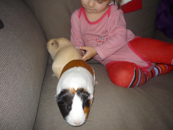 Protože jsem od mala měla hodně zvířat, po přestěhování do Prahy (do paneláku) a po založení rodiny, začínáme postupně s menšími zvířátky – morčátky. Máme 2 morčečí holčičky, které nám dělají radost již 2 roky. Dcerka je z nich nadšená a i přes počáteční učení zacházení se zvířátky typu: „Nemačkej ji jako pastu“, „Nedávej jim pusinky“, „Nehaž jim to jídlo do klece“, se i ona naučila užívat si jejich společnost a hrát si s nimi. Časem, až bude dcerka větší (teď jsou jí 4 roky) bychom rádi pořídili pejska. Zatím jsme však v tomto ohledu ve fázi plánování.